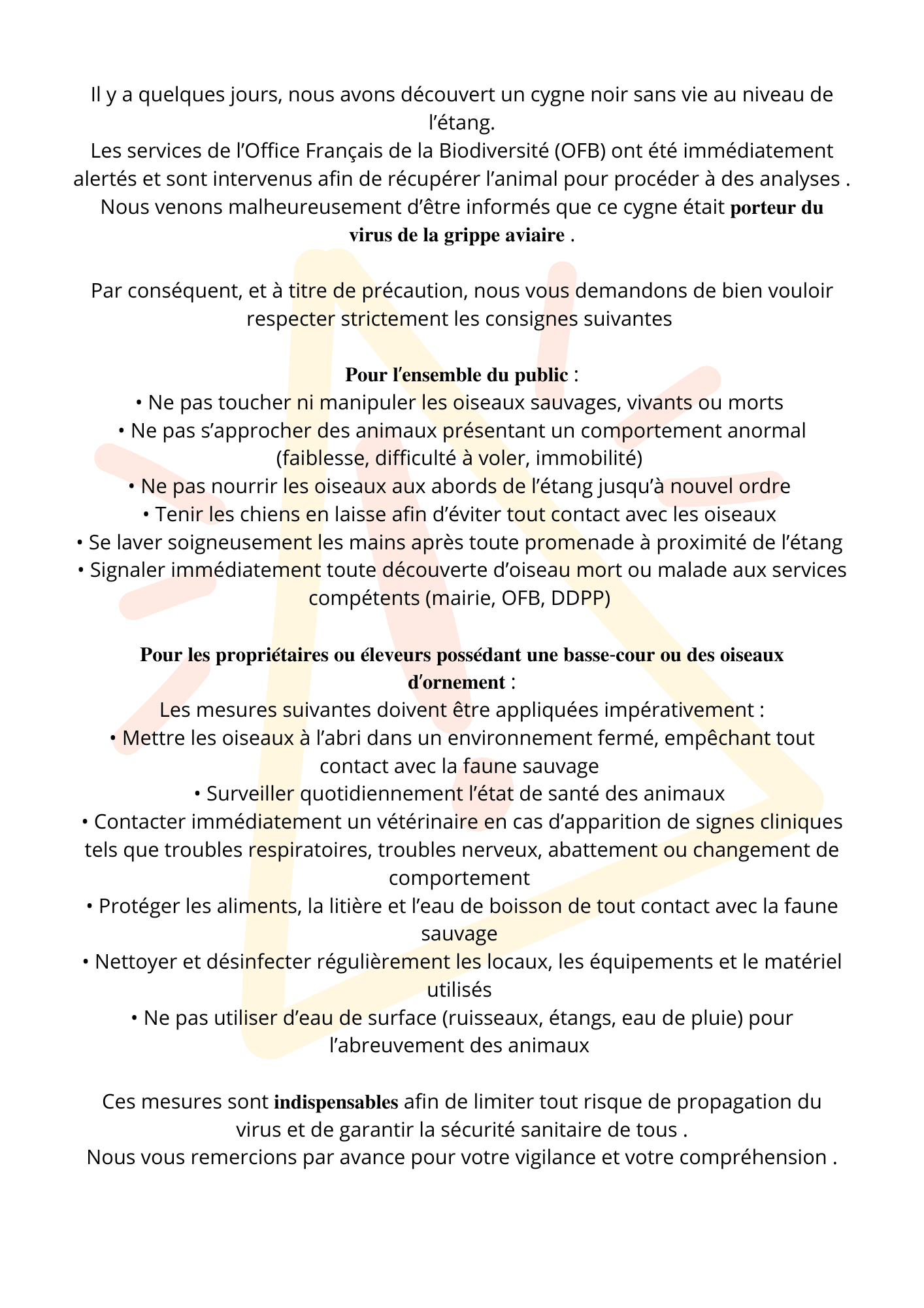 MESSAGE IMPORTANT - GRIPPE AVIAIRE
